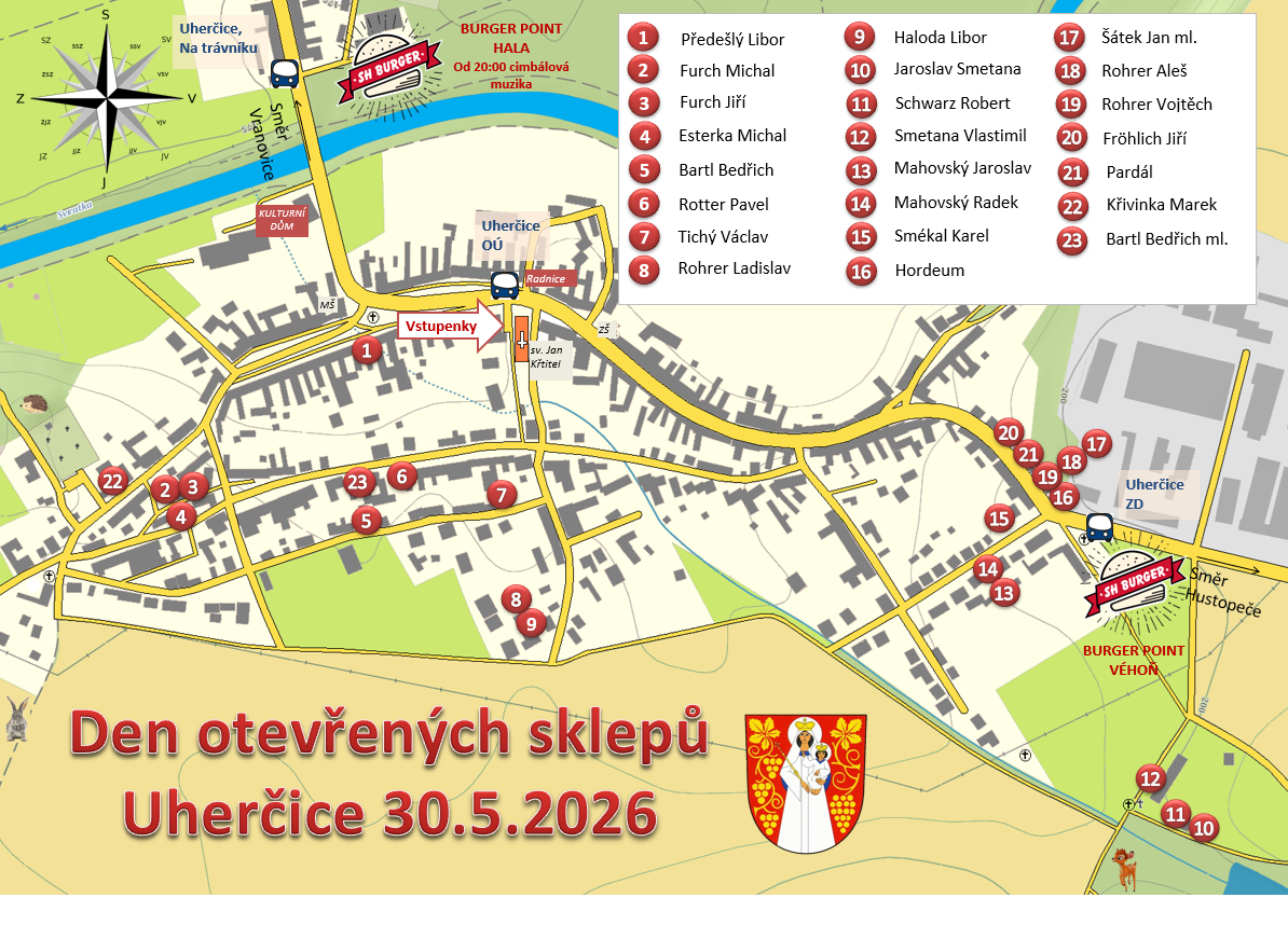 - Navazující večerní akce u sportovní haly není pořádána Vinařským spolkem Uherčice a je čistě v režii provozovatele SH burger.